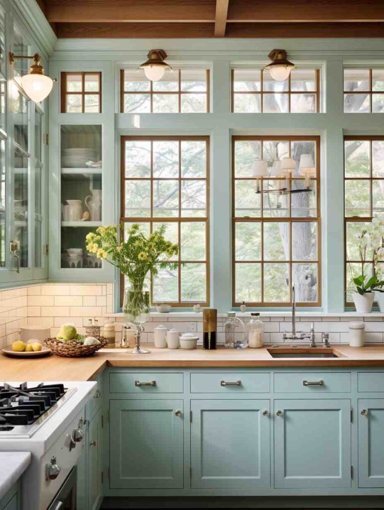 Palladian Blue cabinets: Go traditional like marble counters, oil-rubbed bronze hardware, warm gray walls.